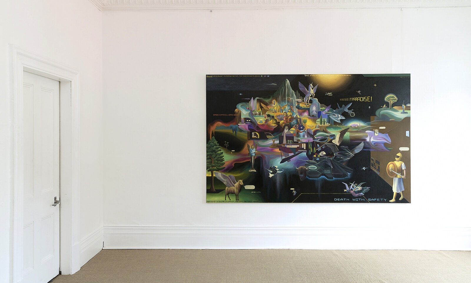 Hunt is a foremost painter in the country and his vivid imagery, depicting spiritual visions coupled with biblical and ancient scriptures, conspiracy theories, political ideologies and Sci-Fi themes have become familiar works on the New Zealand painting scene. The rich symbolism and imagery are very personal to Hunt but at the same time absolutely universal. The condition of humanity is at the heart of his work, the concerns, the joy, the utopian dreams through to the nightmarish hells.